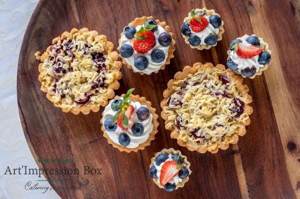 Mini tarts with seasonal fruit (80g) - minimum order 5 servings